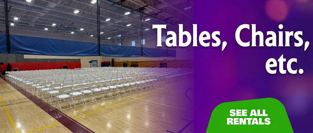 - Party rentals: Tents, Tables, Chairs, and Tent Accessories!