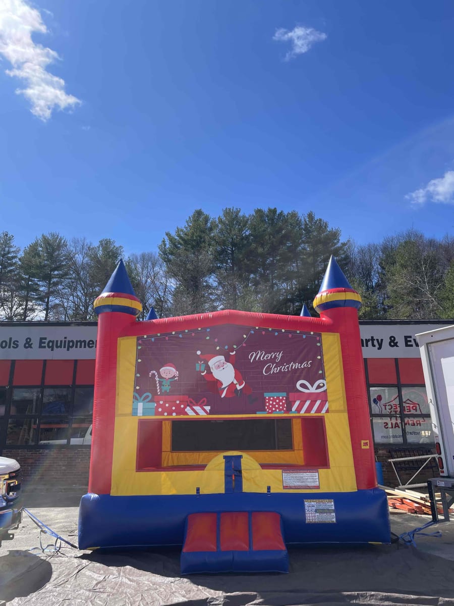 Bounce House Rentals Castle Bounce House W/ Christmas Panel in Ashland, Attleboro, Bellingham, Blackstone, Canton, Cumberland RI, Dover, Douglas, Franklin, Foxborough, Framingham, Grafton, Holliston, Hopkinton, Hopedale, Mansfield, Medfield, Medway, Millis, Mendon, Marlborough, Milford, Millville, Norfolk, Northbridge, North Attleboro, North Smithfield, Norwood, Plainville, Southborough, Sherborn, Upton, Uxbridge, Worcester, Westborough, Wrentham, Walpole, Webster, Westwood and Woonsocket.